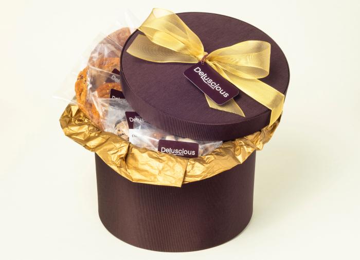 Our signature dark chocolate cookie, made with 4 different kinds of semi-sweet and dark chocolates, rolled in powdered sugar and baked to a brownie/truffle-like texture.